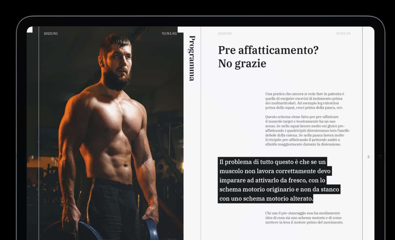 In un mondo sovraffolato di informazioni, saperle selezionare fa la differenza. La prima e unica rivista scientifica italiana sul fitness che ti aiuta a passare dalla teoria alla pratica su base scientifica per ottenere più risultati in palestra.